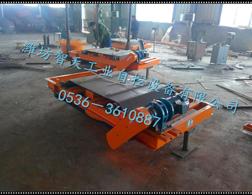 • RCDC系列風(fēng)冷自卸式電磁除鐵器,是在RCDA系列風(fēng)冷懸掛式電磁除鐵器的基礎(chǔ)上增加了驅(qū)動電機(jī)、滾筒、帶刮板的卸鐵膠帶等組成的卸鐵機(jī)構(gòu)。