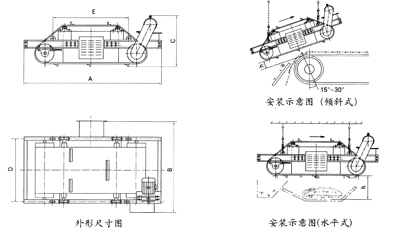 RCDC系列風冷自卸式電磁除鐵器,是在RCDA系列風冷懸掛式電磁除鐵器的基礎上增加了驅動電機、滾筒、帶刮板的卸鐵膠帶等組成的卸鐵機構。在工作過程中卸鐵機構自動將卸鐵皮帶上吸附的鐵磁性物質拋到除鐵器以外的集鐵箱內(nèi),無需停電人工清理,實現(xiàn)了除鐵自動化。
